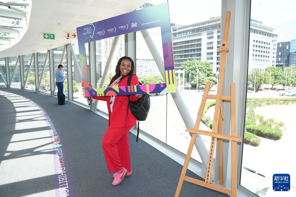11月11日,在南非開普敦,一名與會代表在2025年非洲科技節上留影。