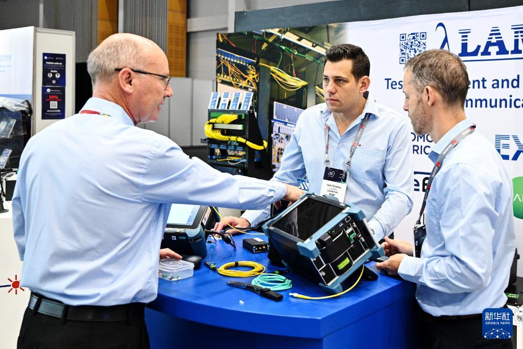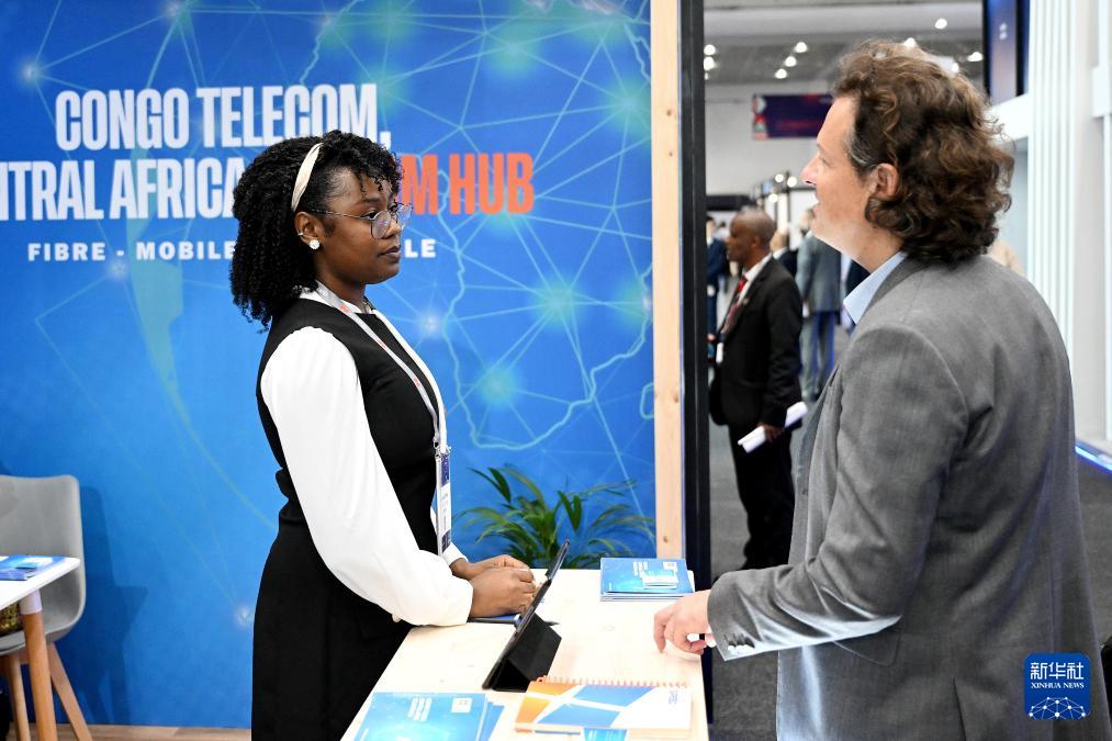 11月11日,在南非開普敦,人們在2025年非洲科技節的非洲通信展上交流。
